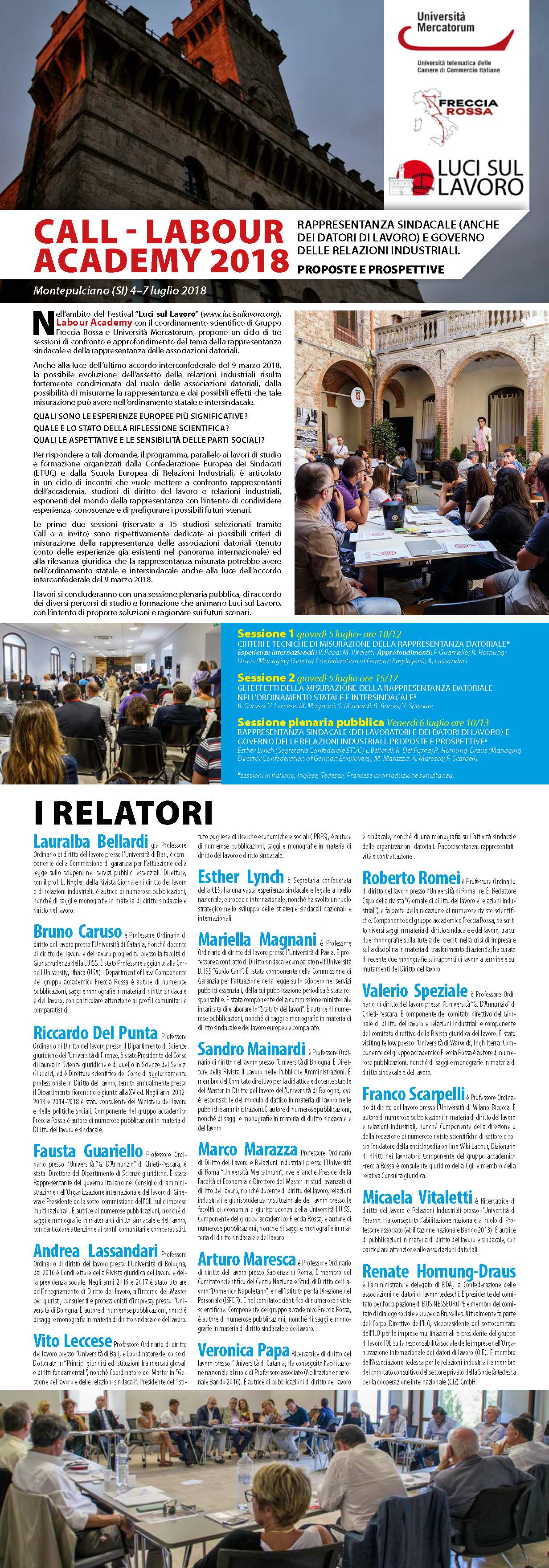 Call-labour Academy 2018. Montepulciano, 4-7 luglio 2018