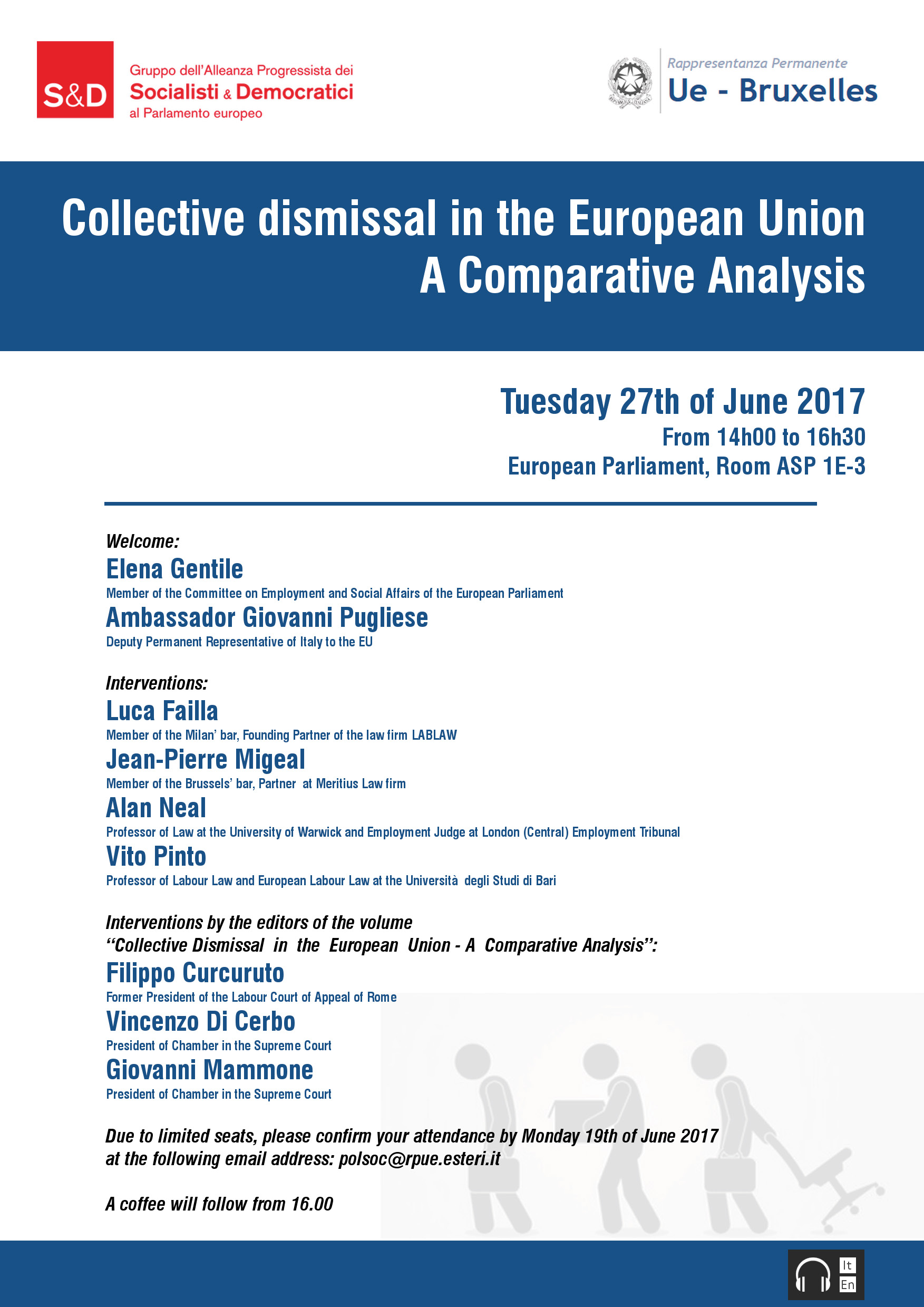 Collective dismissal in the European Union. A comparative Analysis. Bruxelles, 27 giugno 2017