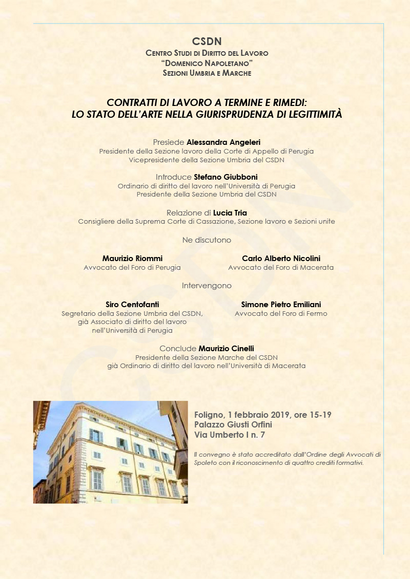 Contratti di lavoro a termine e rimedi, Foligno 1 febbraio 2019