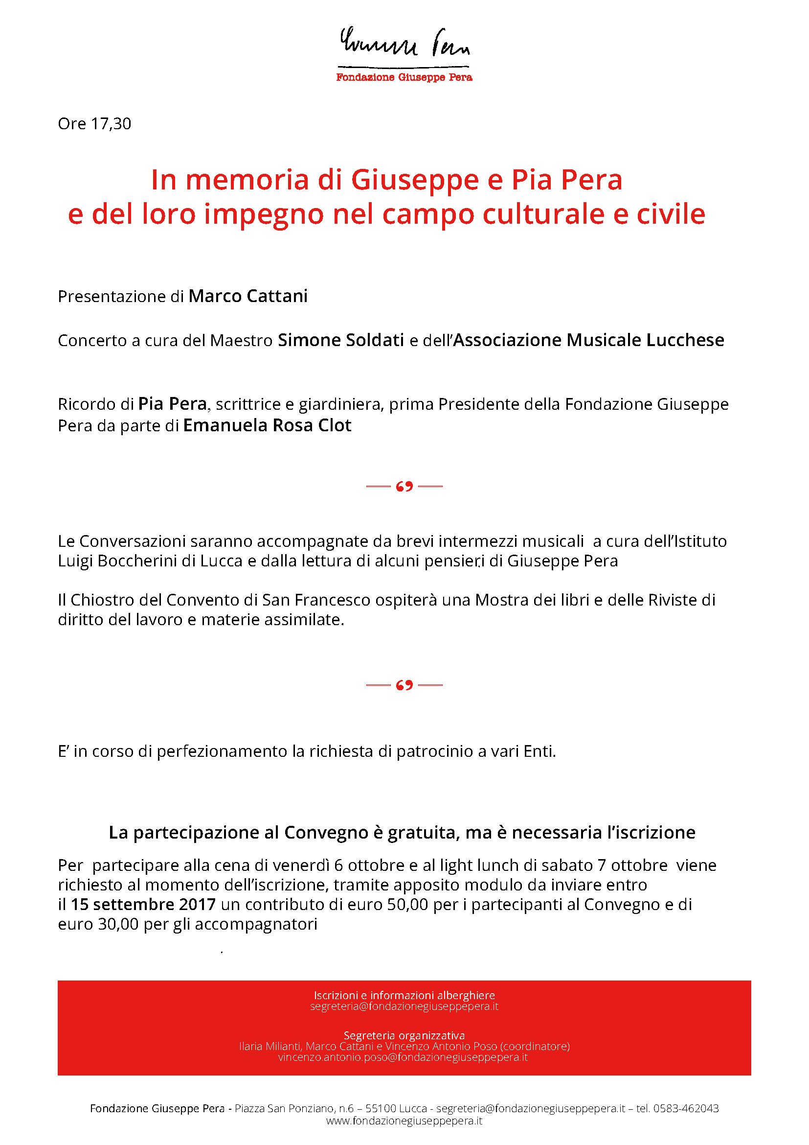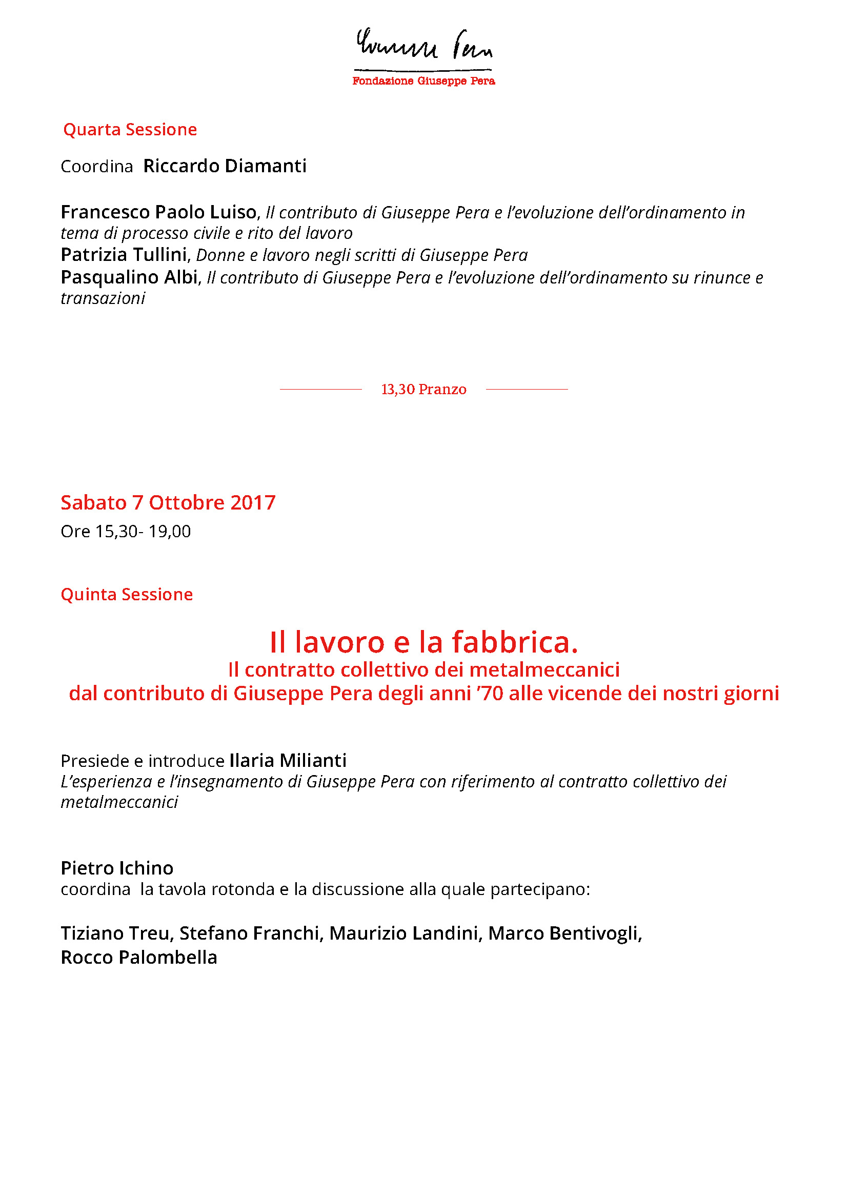 Conversazioni sul lavoro dedicate a Giuseppe Pera dai suoi allievi. Lucca, 6 e 7 ottobre 2017