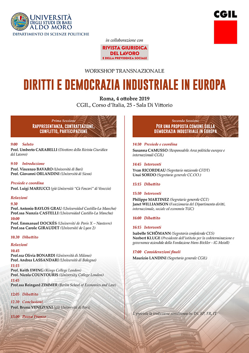 Diritti e democrazia industriale in Europa, Roma 4 ottobre