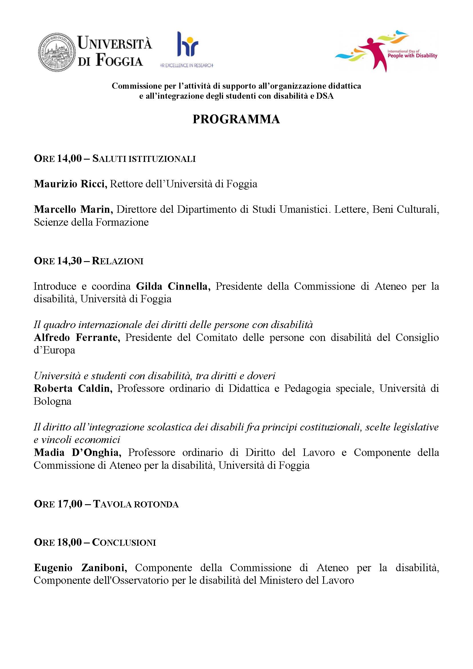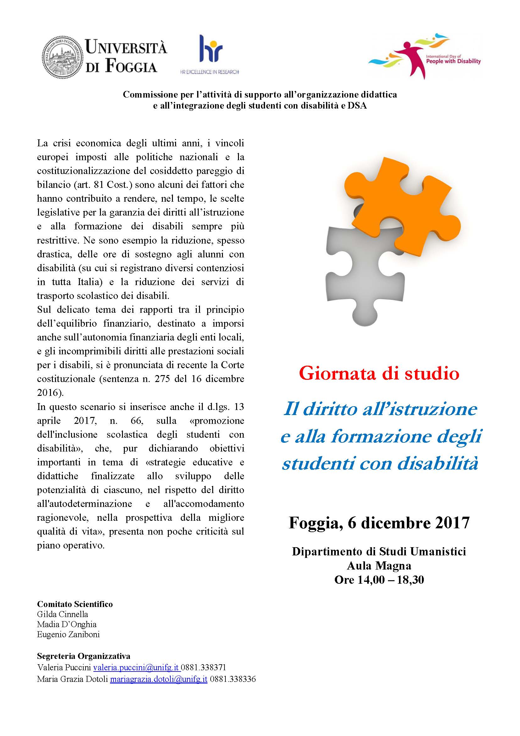 Il diritto all’istruzione e alla formazione degli studenti con disabilità. Foggia, 6 dicembre 2017