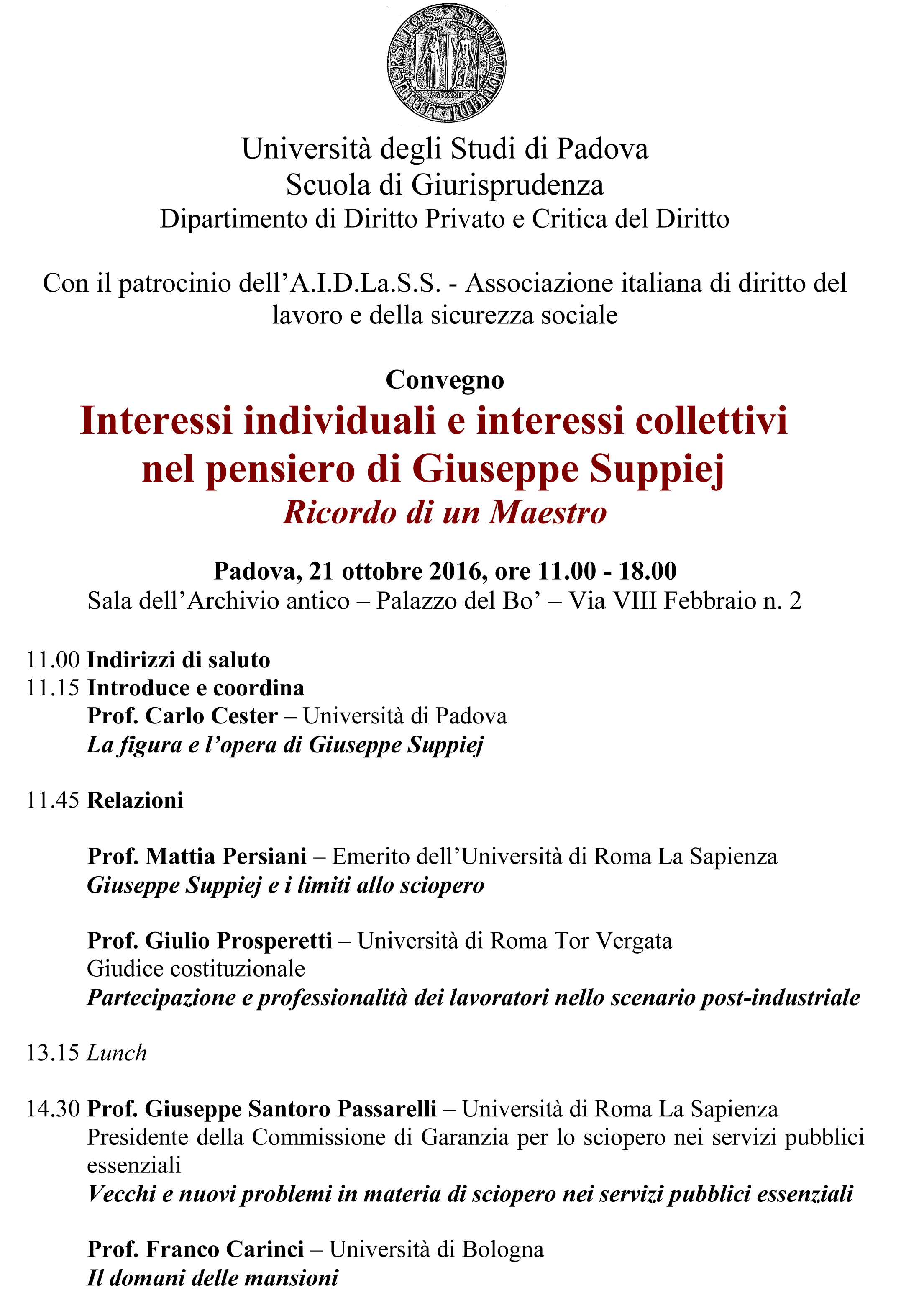Interessi individuali e interessi collettivi nel pensiero di Giuseppe Suppiej. Padova 21 ottobre 2016