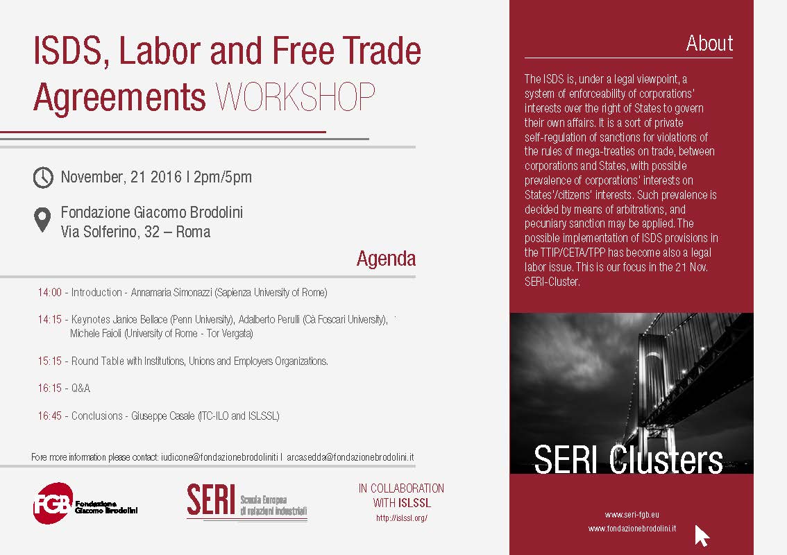 ISDS, Labor and Free Trade Agreements. Workshhop. Roma, 21 novembre 2016