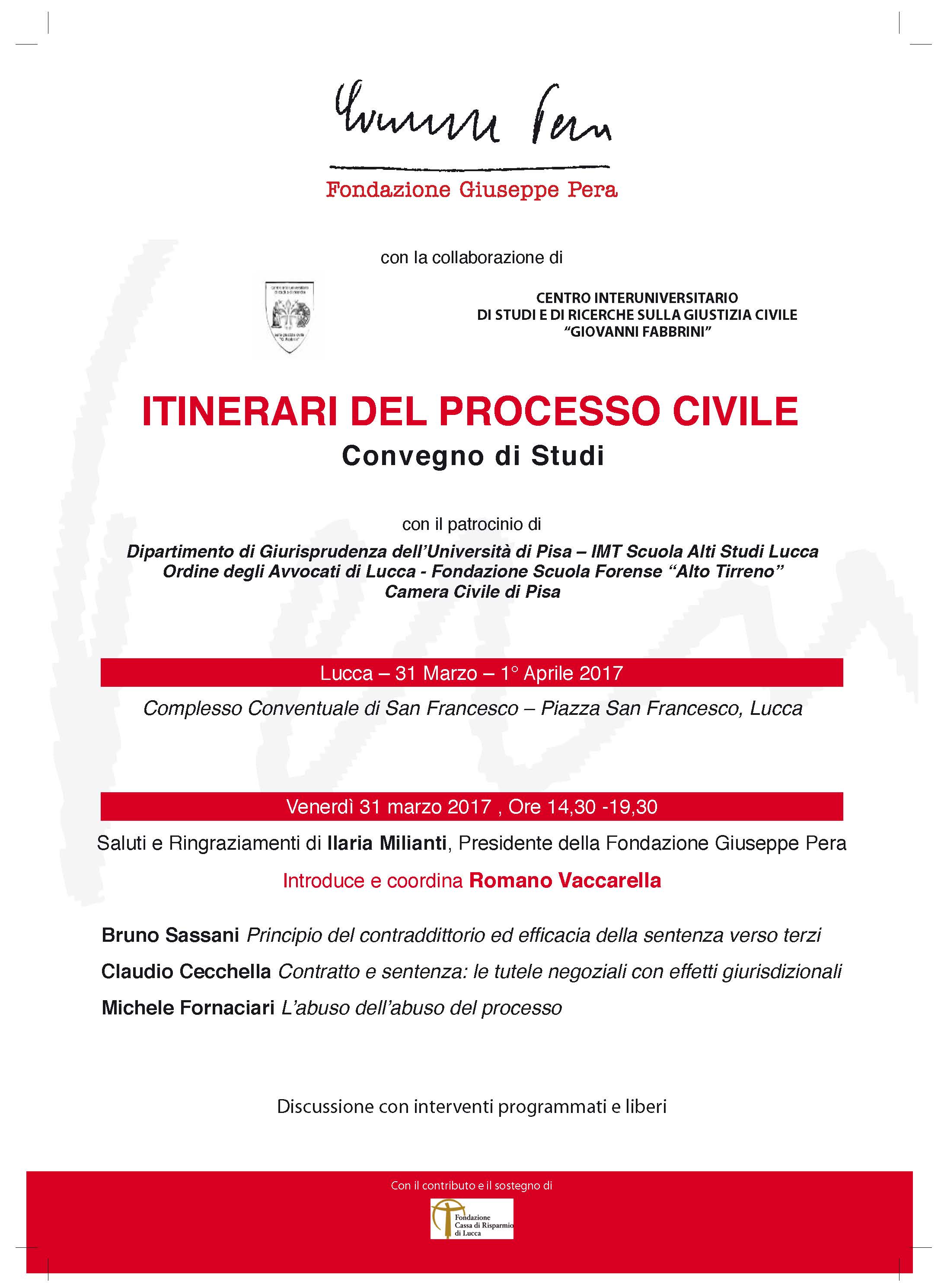 Itinerari del processo civile. Lucca, 31 marzo – 1 aprile 2017