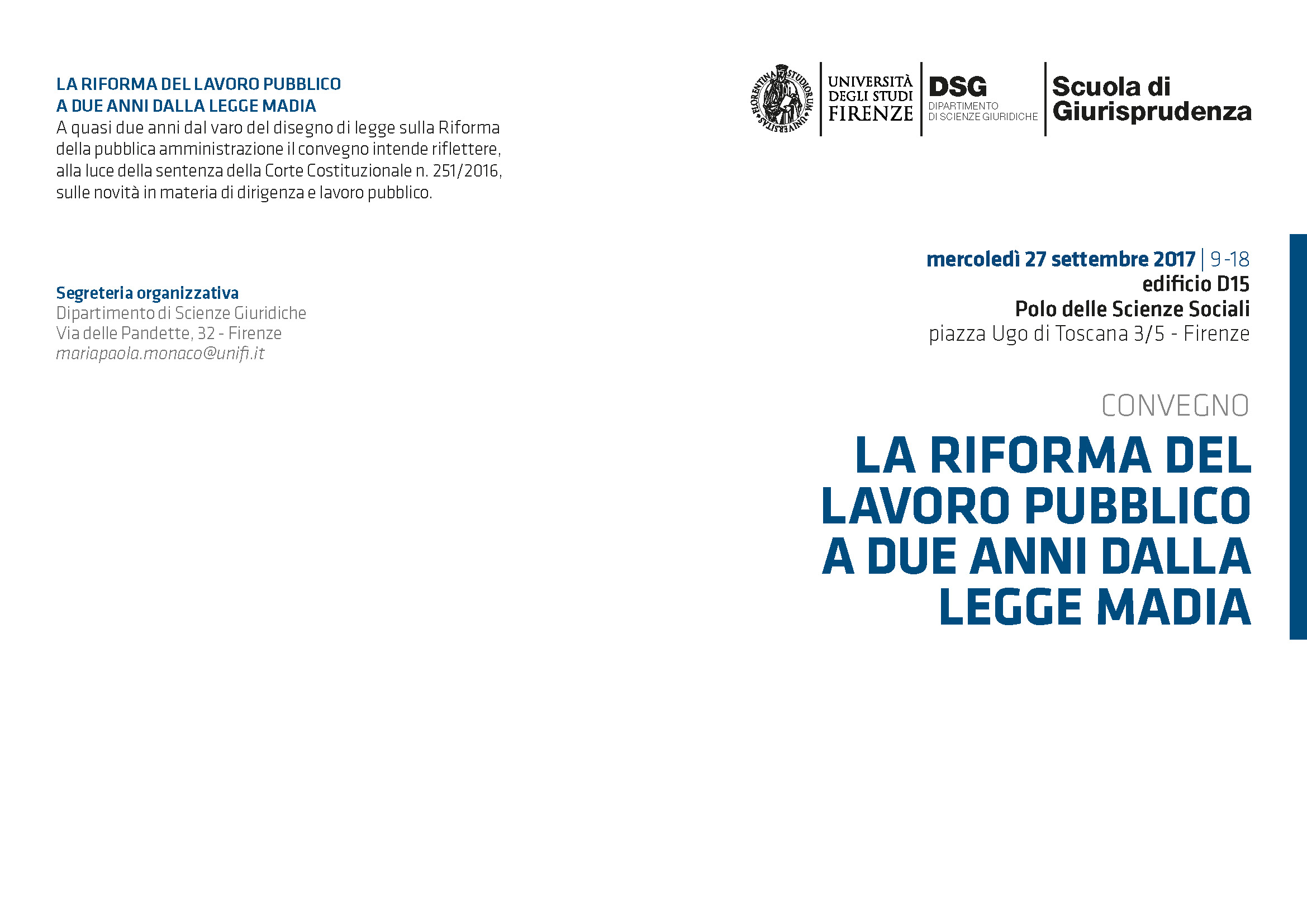 La riforma del lavoro pubblico a due anni dalla legge Madia. Firenze, 27 settembre 2017