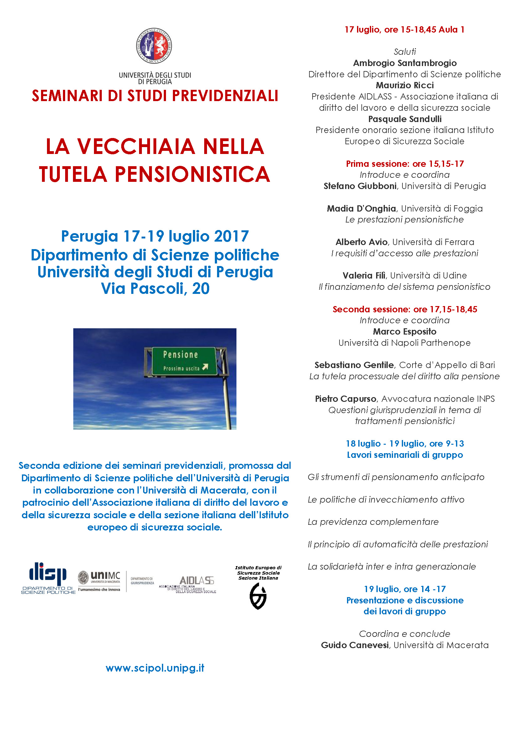 La vecchiaia nella tutela pensionistica. Perugia, 17-19 luglio 2017