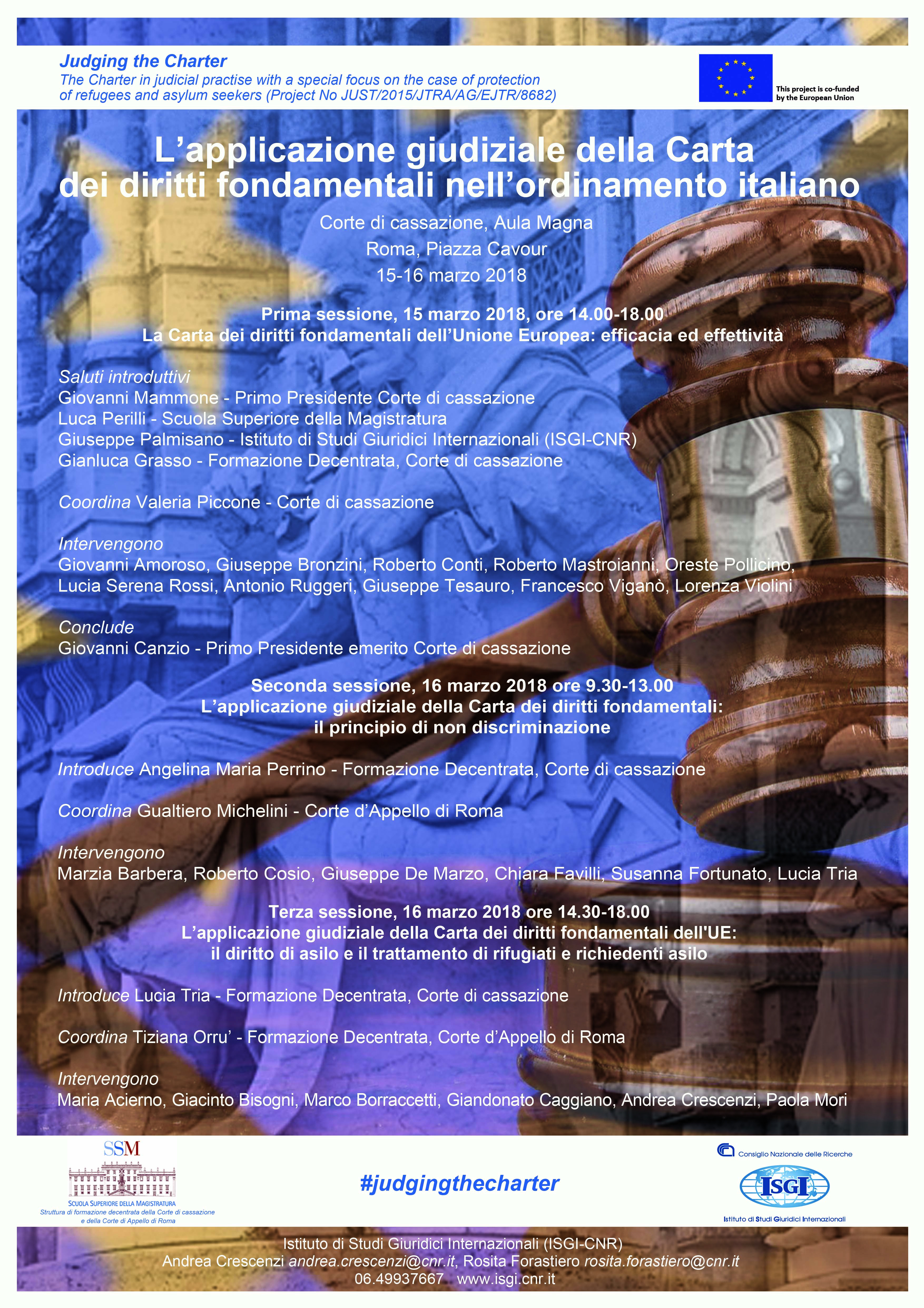 L’applicazione giudiziale della Carta dei diritti fondamentali nell’ordinamento italiano. Roma, 15-16 marzo 2018
