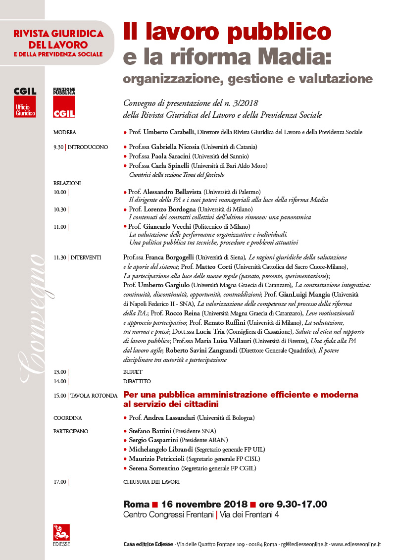Il lavoro pubblico e la riforma Madia, Roma 16 novembre 2018