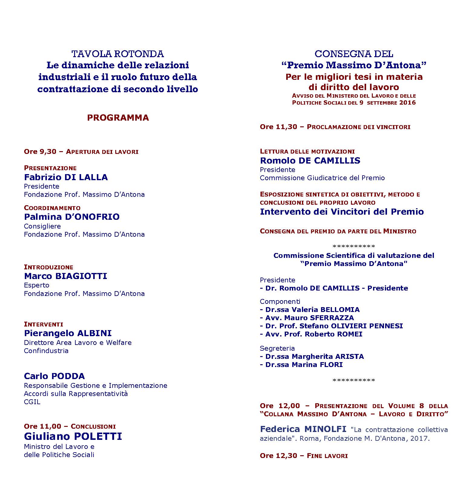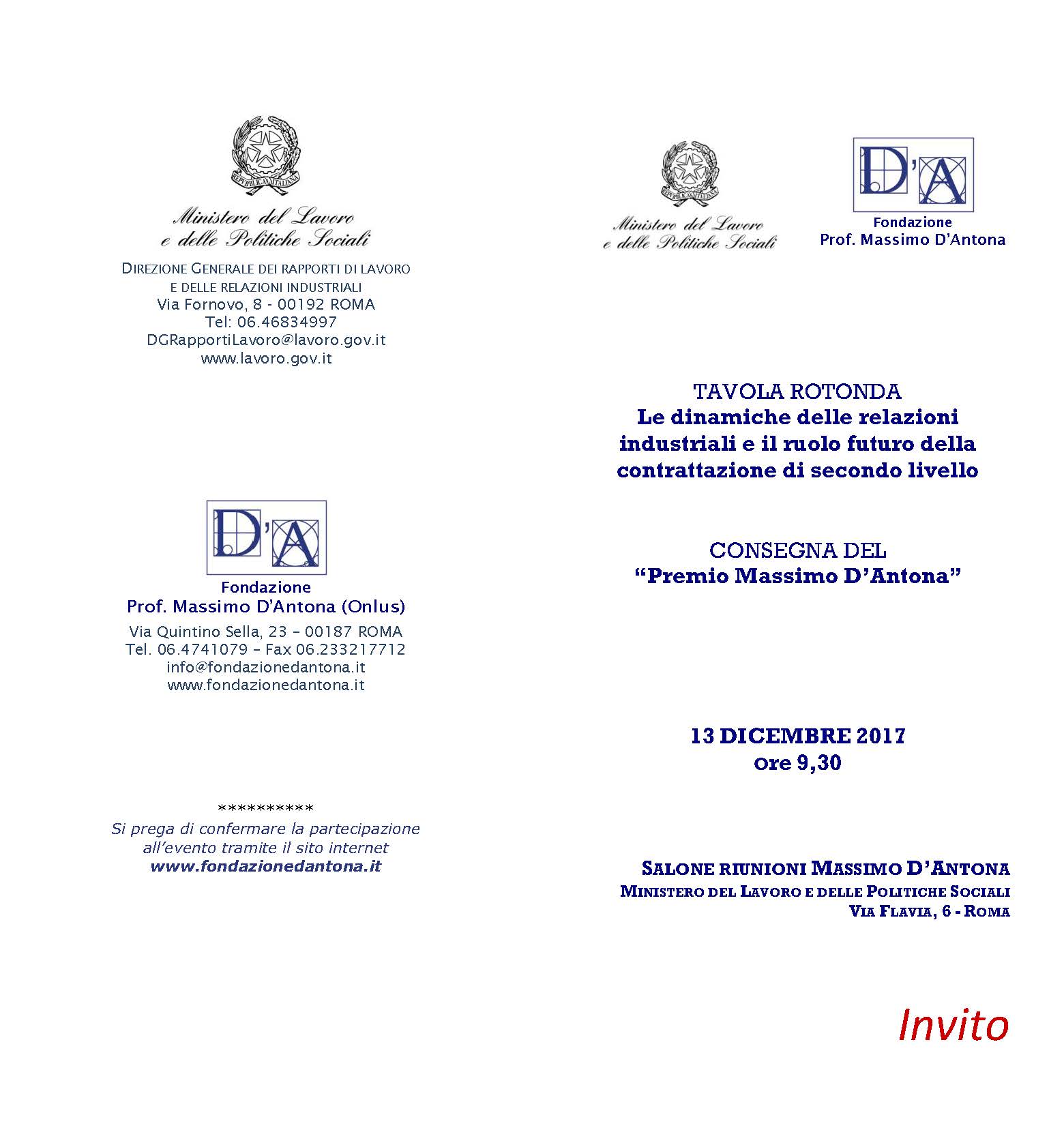 Le dinamiche delle relazioni industriali e il ruolo futuro della contrattazione di secondo livello. Roma, 13 dicembre 2017