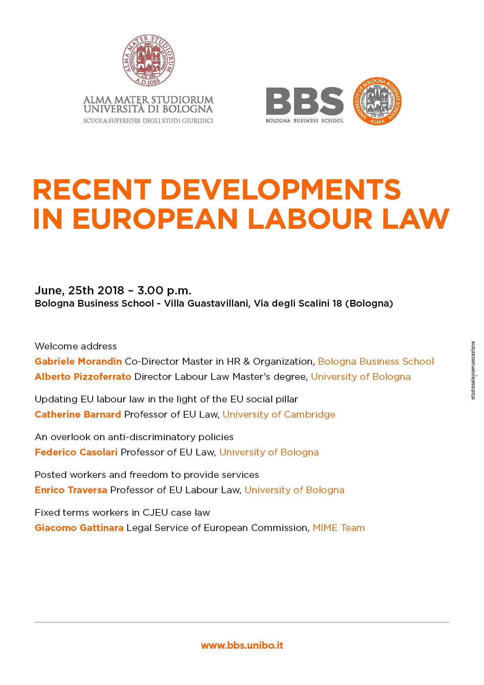 Recent developments in european labour law. Bologna, 25 giugno 2018