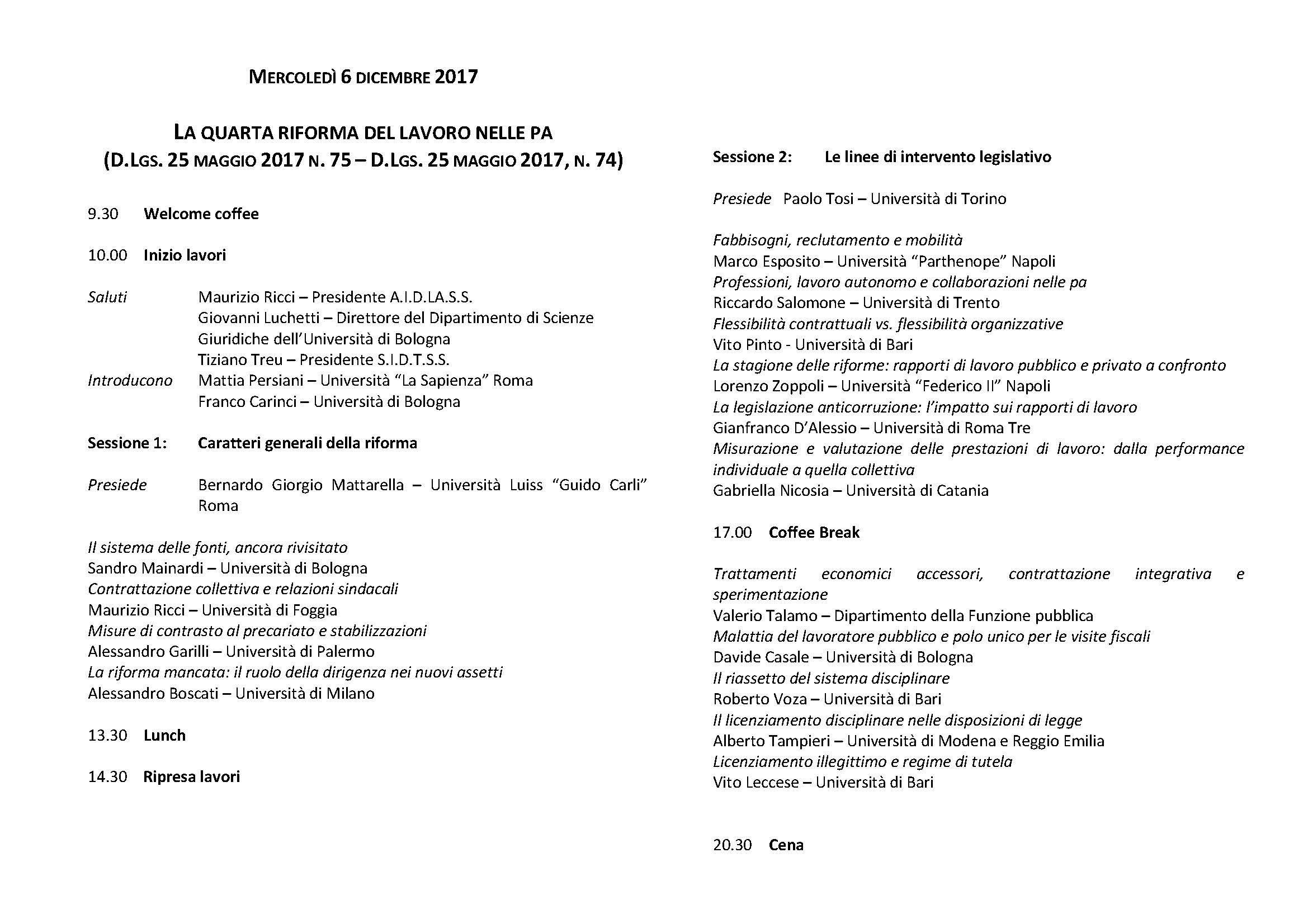 Seminari di Bertinoro. Dialoghi di diritto del lavoro tra cielo e mare. Bologna, 6-7 dicembre 2017
