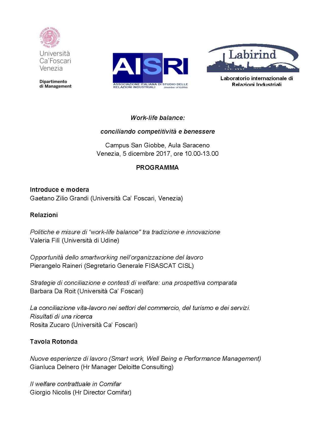 Work-life balance: conciliando competitività e benessere. Venezia, 5 dicembre 2017